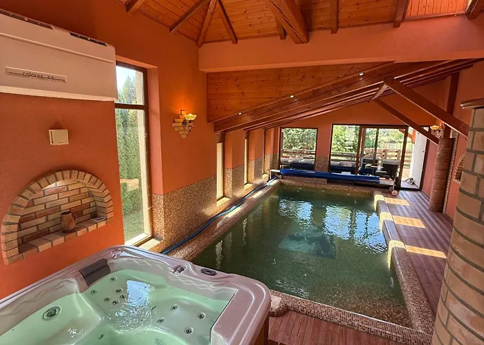 该场地配有公共厨房,便利设施十分齐全。 别墅距离最近的公共汽车站仅850米。 在别墅的露台上宾客可以欣赏到山脉景致。 热浴盆 和一个室内游泳池会恢复客人的健康。